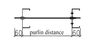 1. If it is near the gutter side, the length of the brace = the distance between the purlins +one end 60mm 2. the total weight: weight of single bar* number of bars (refer to the layout of purlin) |